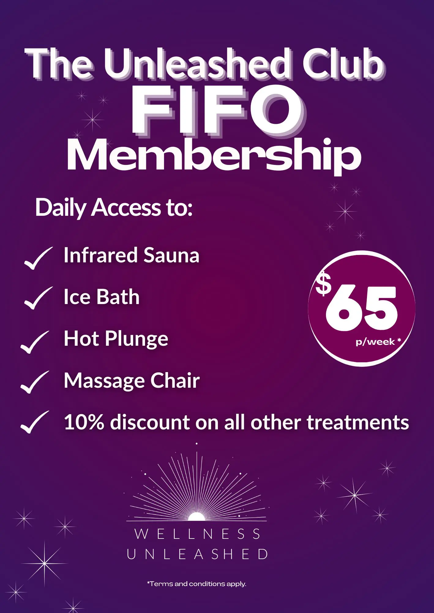 The membership includes unlimited access to infrared sauna, ice bath, hot plunge and massage chairs. You also receive a 10% discount on all other treatments.
